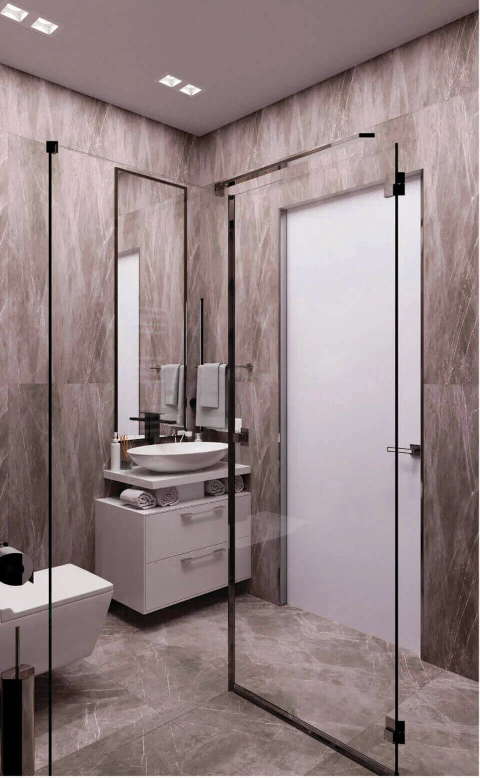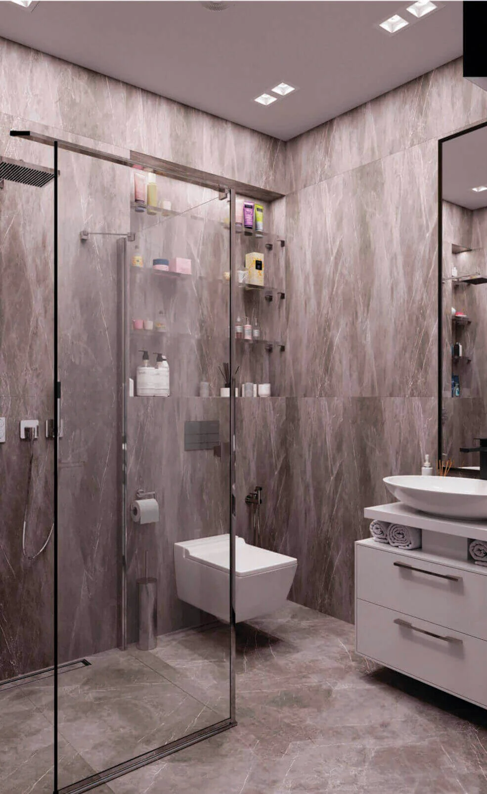 Использовали технику Samsung темного цвета, а также сантехнику Paffoni покрытие хром.
